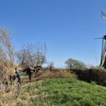 Na deze informatie was het tijd om te werken. We verdeelden ons snel over de te knotten bomen en gingen aan de slag. Alle takken werden verzameld op een hoop met de bedoeling om deze te verbranden, zodra het weer gunstig is. Na de lunch was er gelegenheid om de draaiende molen te bezichtigen.