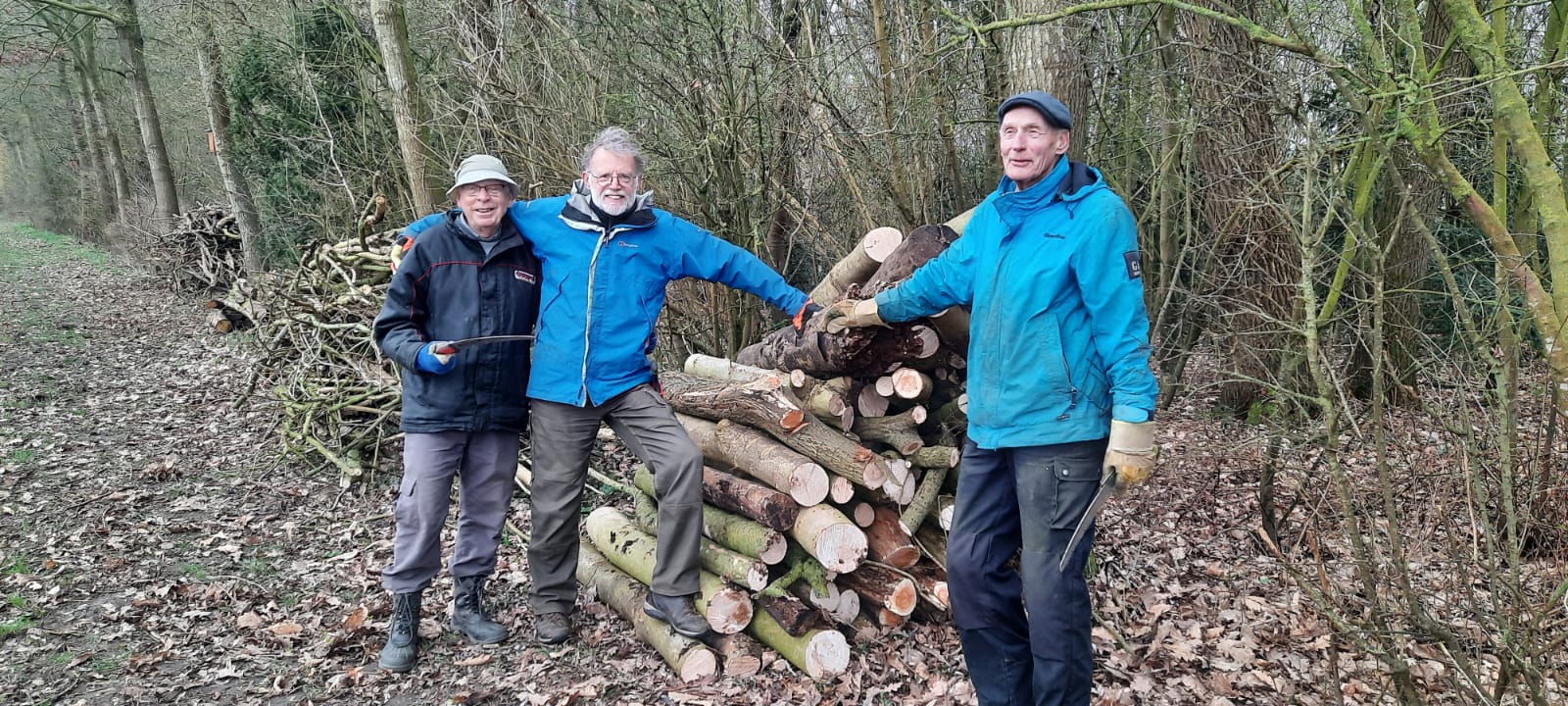 ’s Middags gaat hetzelfde werk verder. Rond 3 uur kijken we redelijk voldaan naar de stapels hout en het zichtbaar opgeschoonde bos. De gesneuvelde iep gaan we vast en zeker over 2 weken zien. Werk genoeg nog.