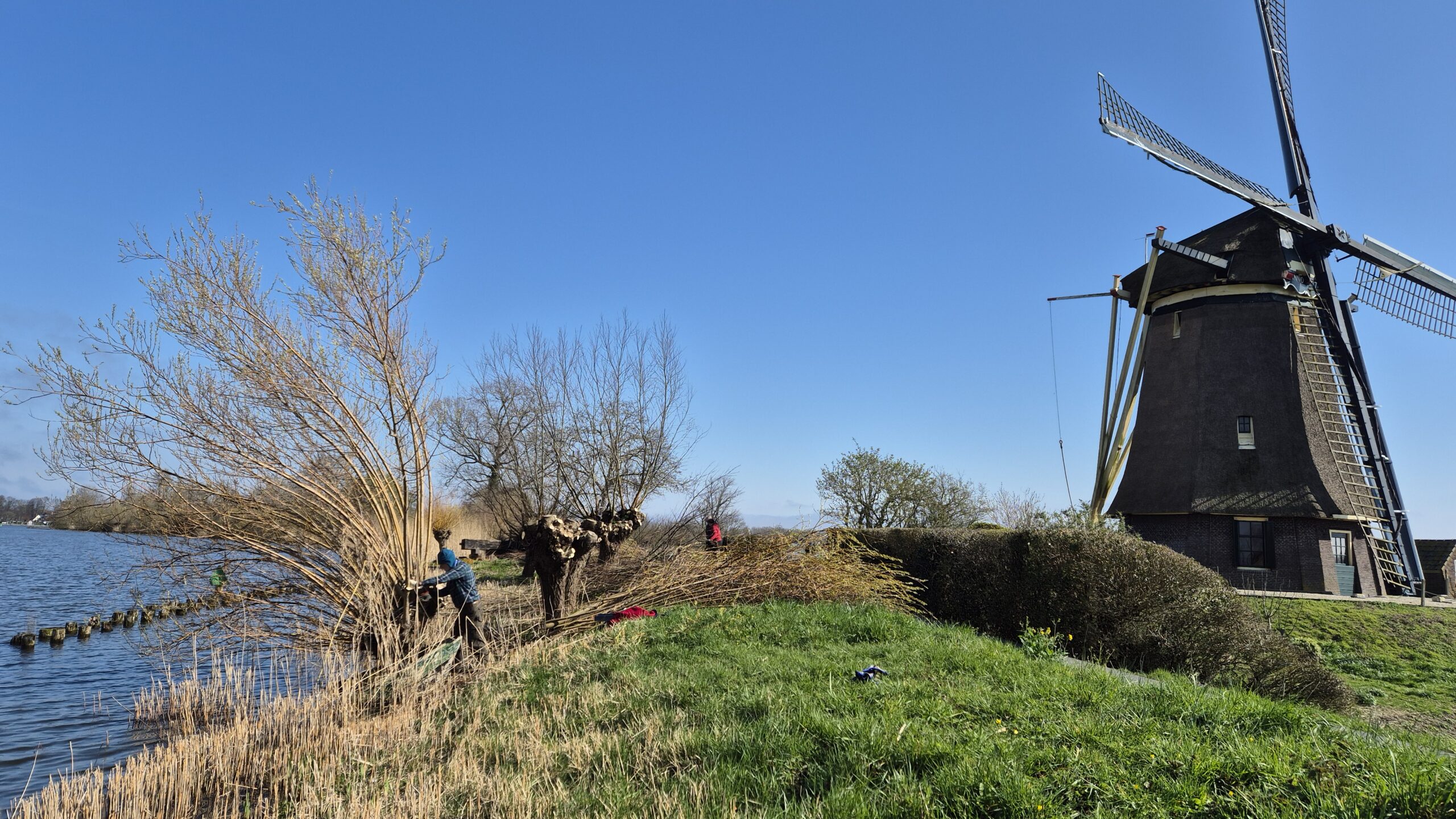 We werken bij de Hoekermolen bij Vreeland. Het is vandaag de start van de lente en het weer sluit zich hierbij aan. Heel mooi weer, nadat de ochtendmist is opgetrokken.